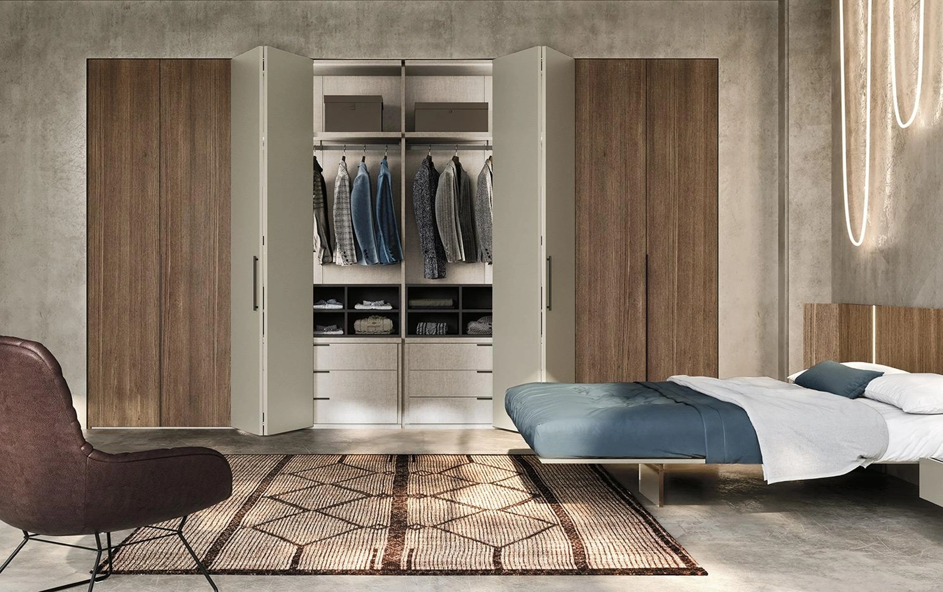 Se desideri una camera da letto ben arredata, scegli l'armadio Comp N12 con ante a soffietto di Mobilgam!