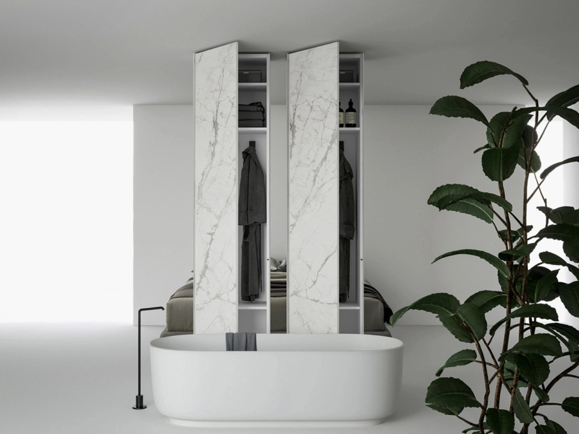 Ecco qui l'armadio Freedhome Pilastri Bifacciali in gres di Caccaro! Un ricco catalogo di armadi su misura con ante battenti.
