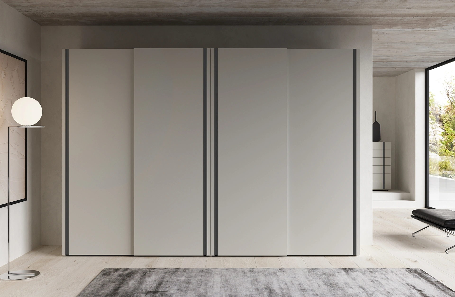 Una ampia gamma di arredi in laccato opaco come quest'armadiatura con ante scorrevoli nella fotografia. Se desideri creare una stanza bella e funzionale, compila il form o vieni a trovarci per ottenere infromazioni, complementi e accessori nell'ambito dell'Arredamento Casa. Durevolezza e comfort sono gli aspetti che, insieme a una buona resa estetica, distinguono tutti gli Armadi a muro moderni della marca Favero. Armadio con ante scorrevoli Presa S laccato di Favero: se cerchi arredatori professionisti per preventivi e progetti, realizza con noi la casa che hai sempre sognato. Armadio con ante scorrevoli Presa S laccato di Favero in laccato opaco: in una ricca gamma di mobili ed elementi accessori, questo modello ti permetterà di completare la tua camera da letto come l'hai sempre immaginata.