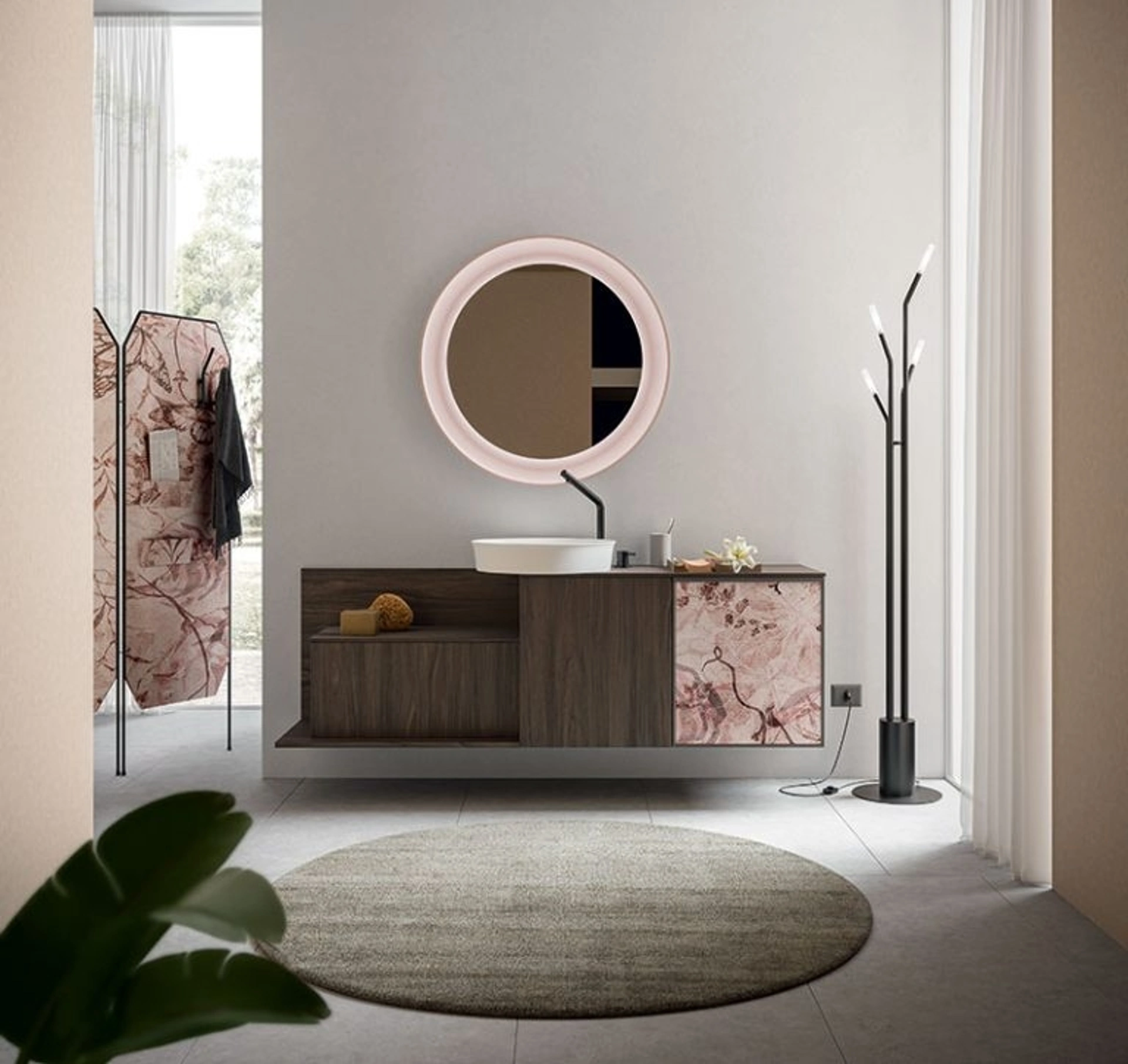 Arreda la stanza del benessere moderno alla perfezione con Cartabianca 04, mobili bagno sospesi e accessori in melaminico di Cerasa.