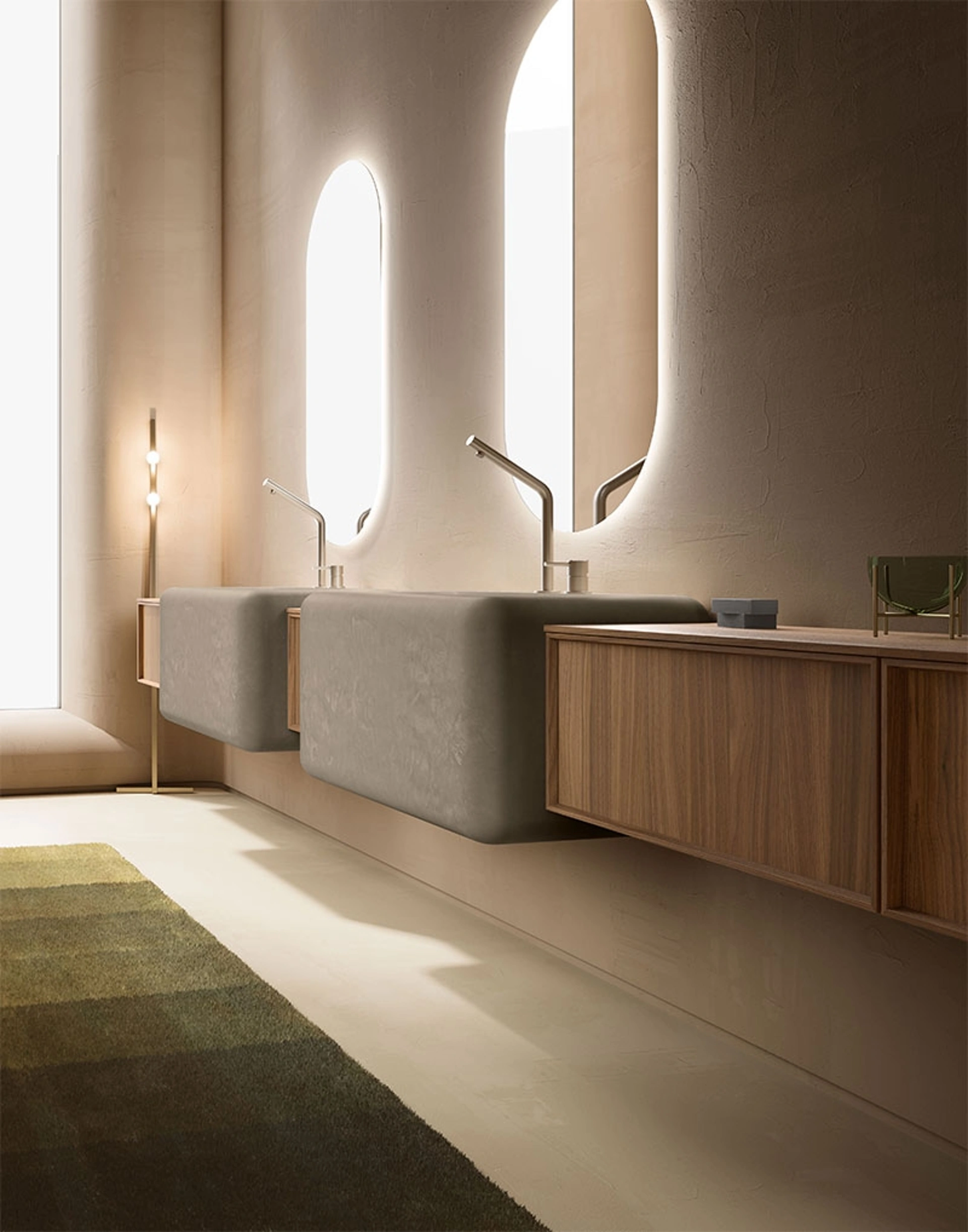 mobili bagno sospesi in legno della marca Cerasa: clicca e scopri l'arredo bagno design Des Evolution Caramel 02 per il tuo bagno.
