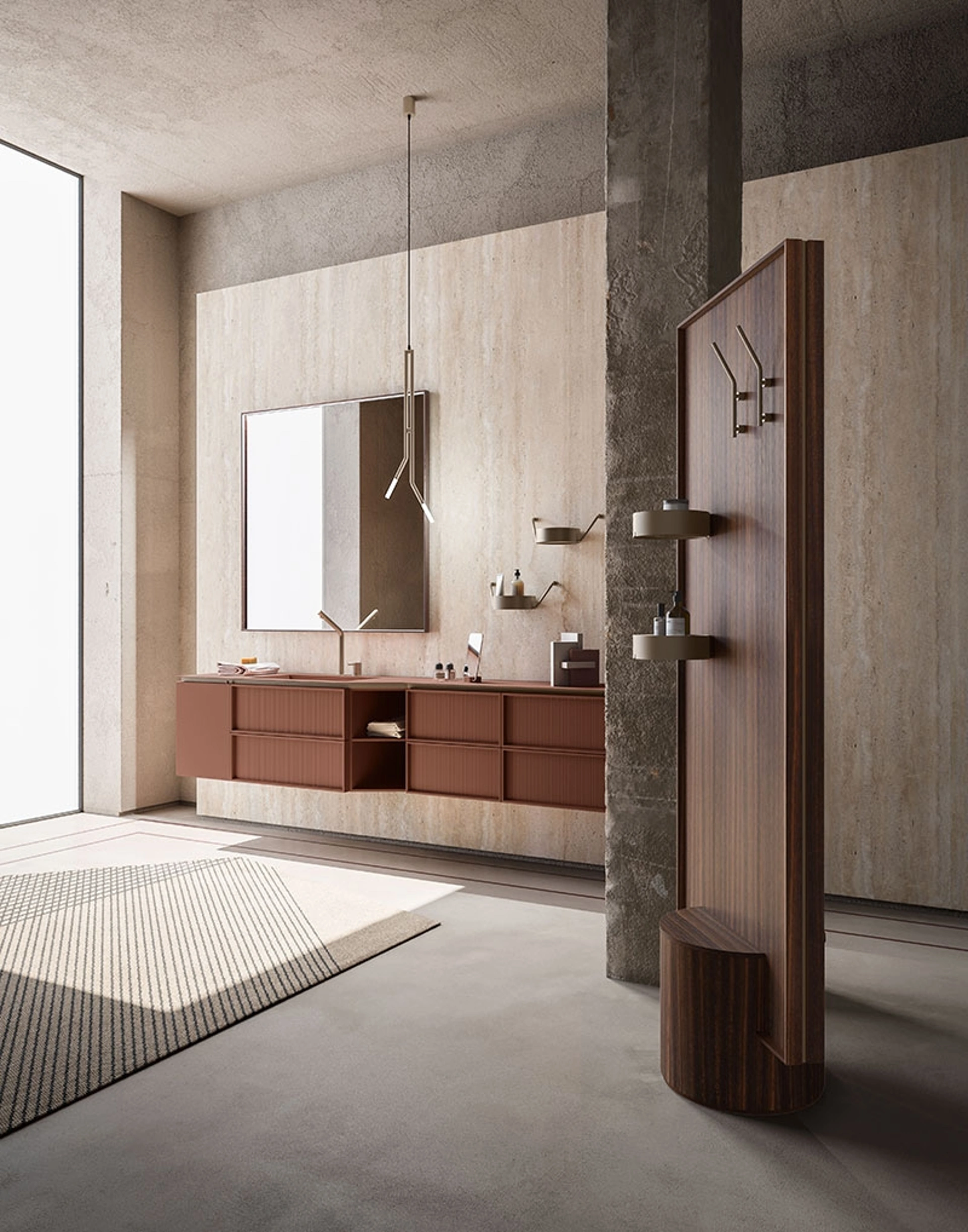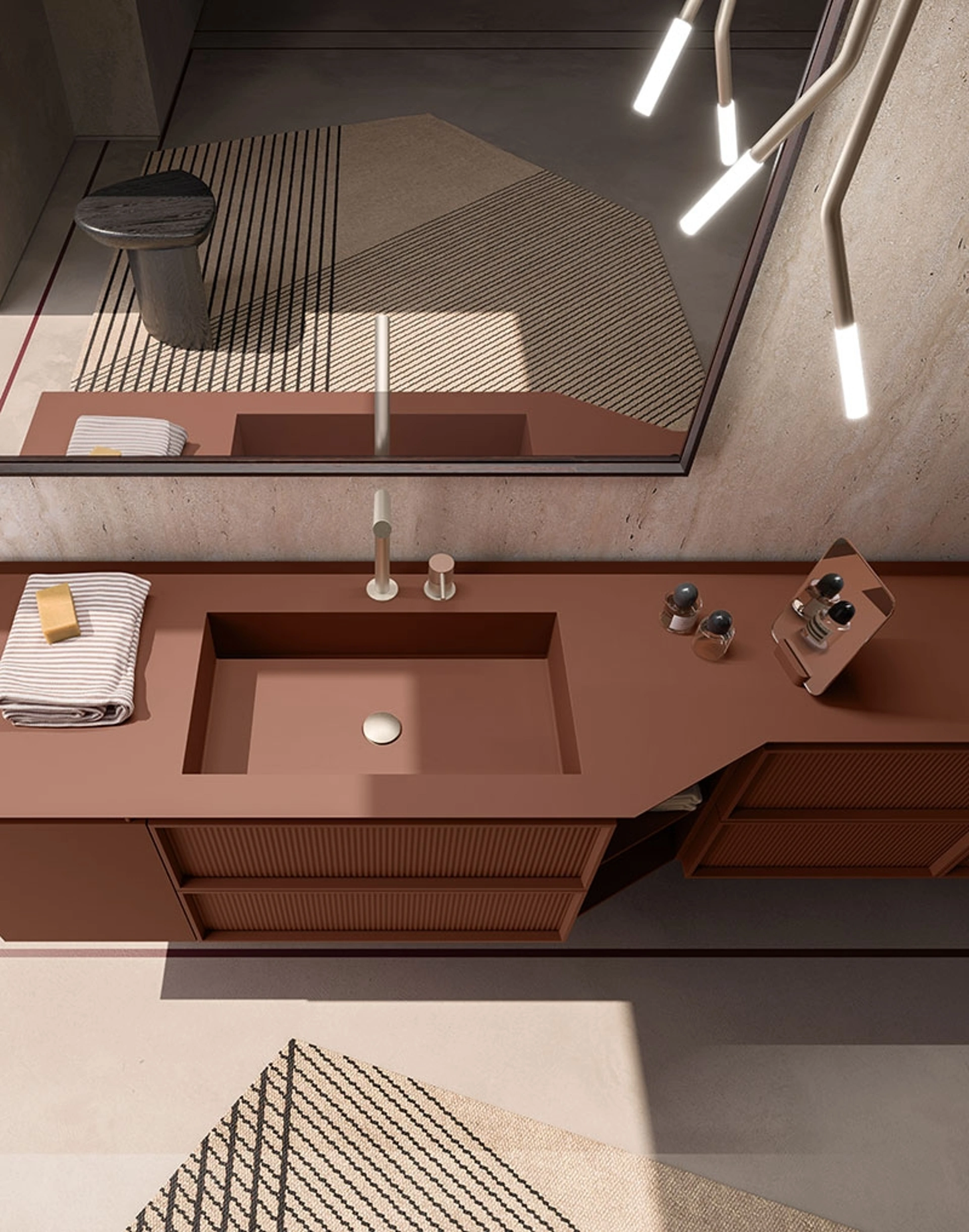 mobili bagno sospesi Des Evolution Sandstone 01 di Cerasa: scopri l'Arredo Bagno in laccato opaco design e arreda il bagno di casa.