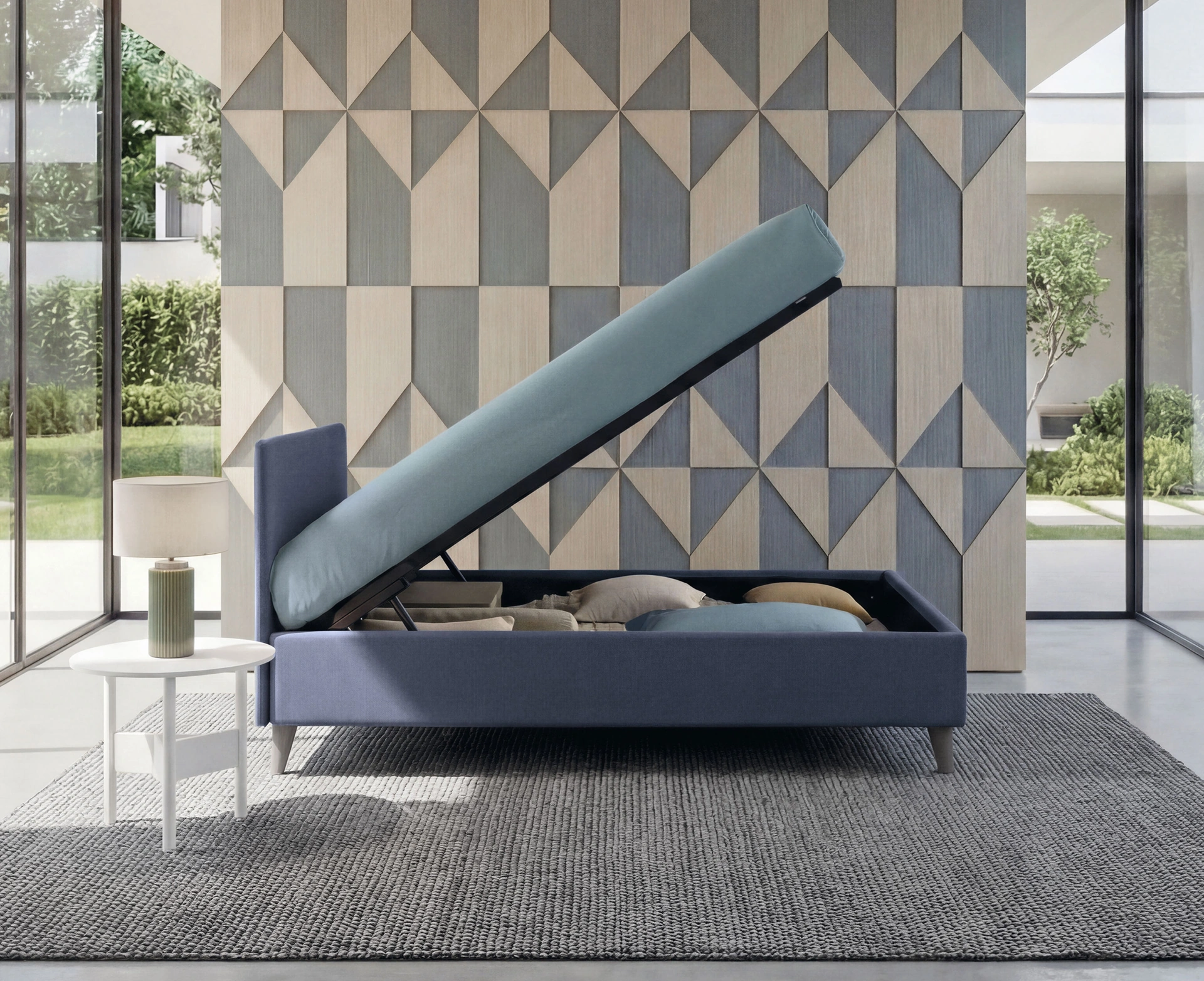 Se desideri letti singoli con contenitore, ecco qui il modello Golf 203 in tessuto per arricchire la cameretta.