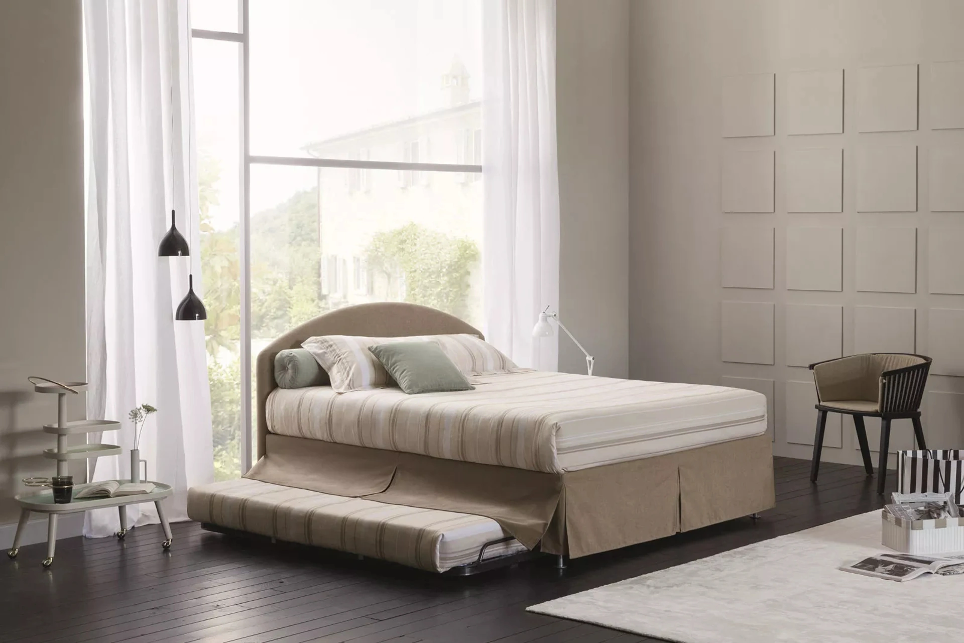 Scegli cromie e finiture e realizza il tuo progetto d’arredo nella camera, progettandola proprio come l'hai sempre sognata. Durante l'acquisto di un buon modello di letto, valuta attentamente le sue misure, le finiture, la forma e il suo stile rispetto al resto degli arredi. I Letti matrimoniali con contenitore del brand, specialista nella realizzazione di Arredamento Casa per la zona del riposo, sono progettati per essere abbinati a mobili ed elementi accessori di ogni tipo, come armadi e comodini, lampade e piantane. Il Letto Banner Combi con box contenitore di Oggioni ricrea uno spazio familiare e confortevole in ogni camera, assicurandoti il sonno più profondo e un design unico.