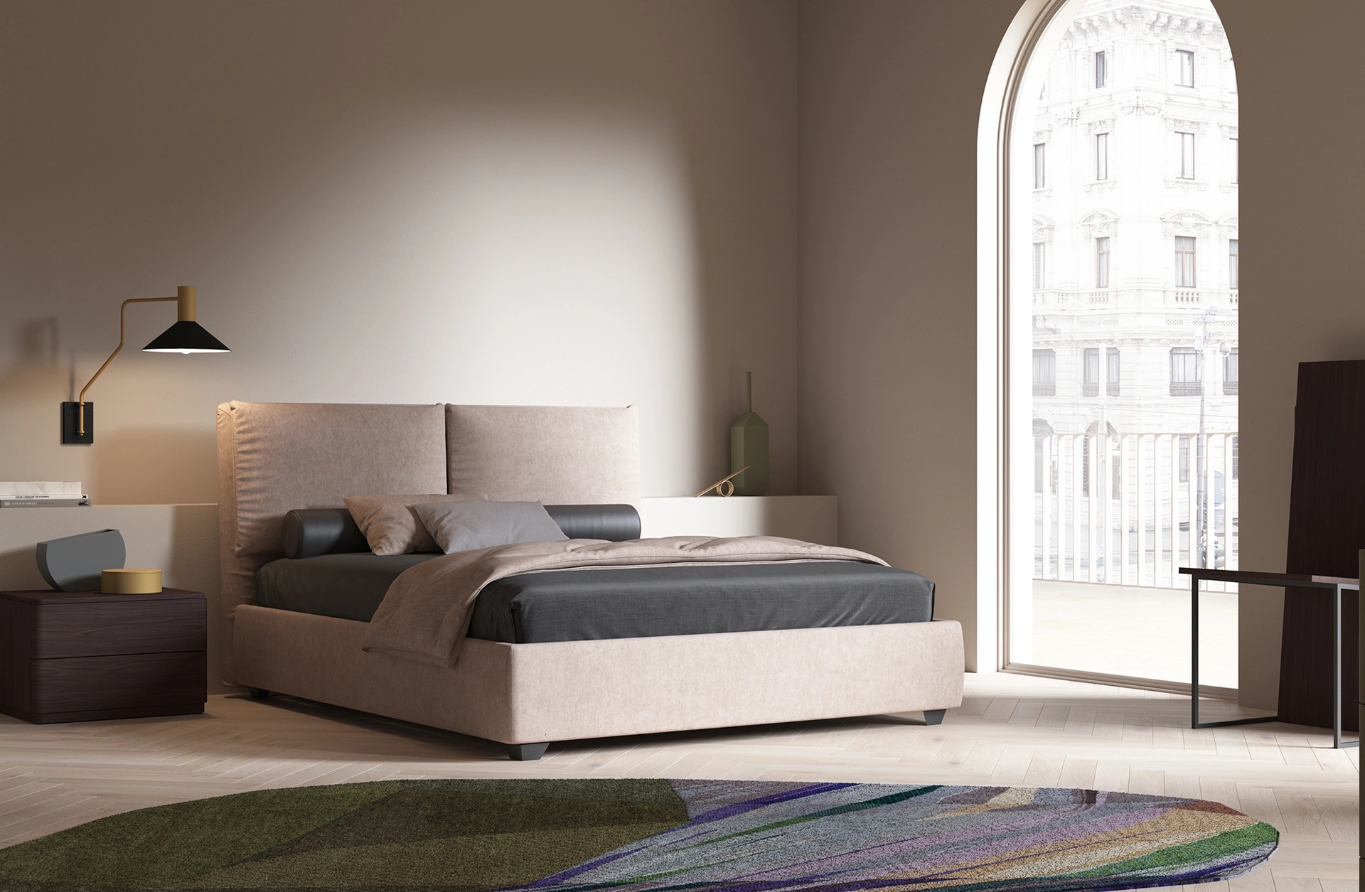 Vuoi ridefinire la zona notte? Ecco qui il letto in tessuto Enjoy di Favero per spazi moderni.
