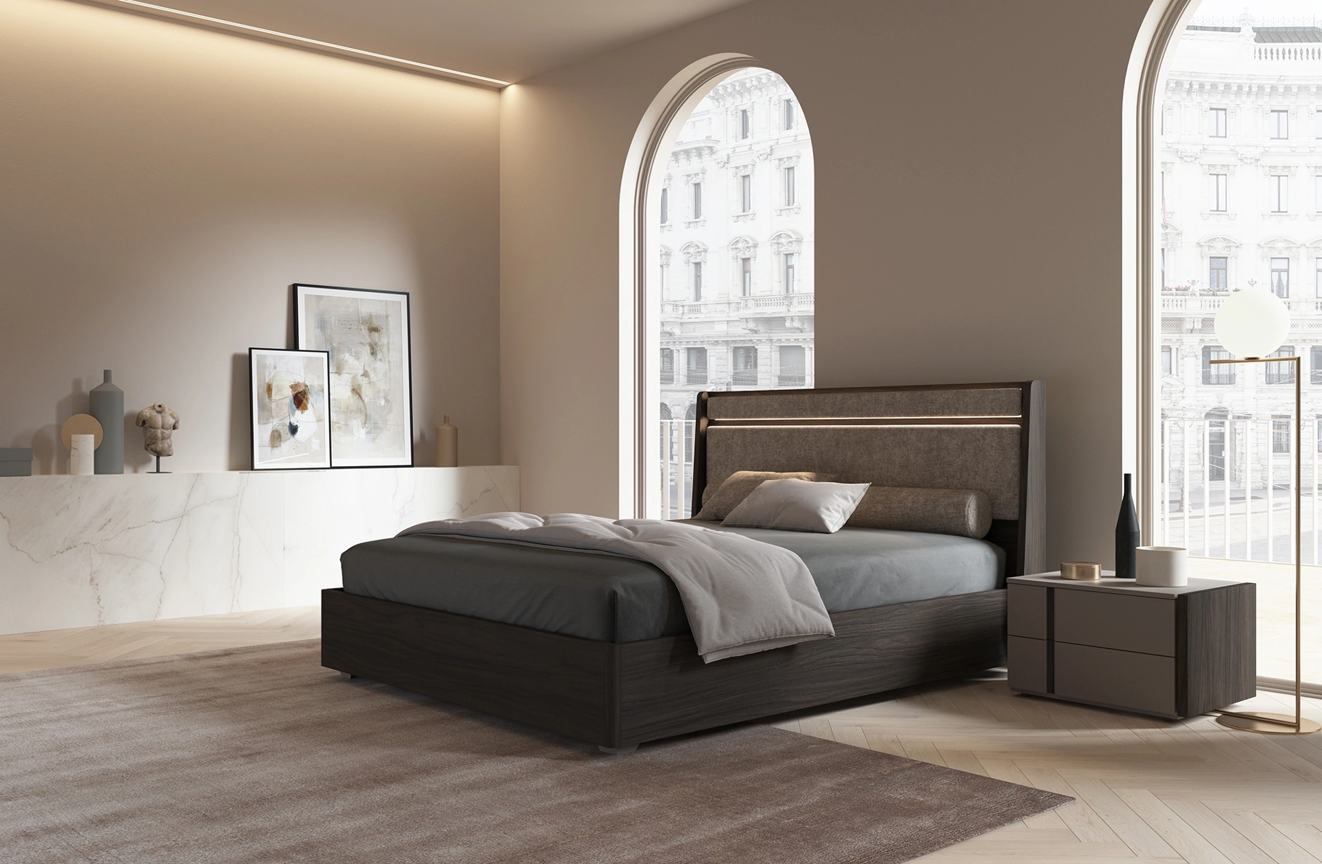 Il letto Hug in melaminico, tra i modelli con testiera matrimoniali moderni di Favero, è pensato per garantirti il riposo migliore.