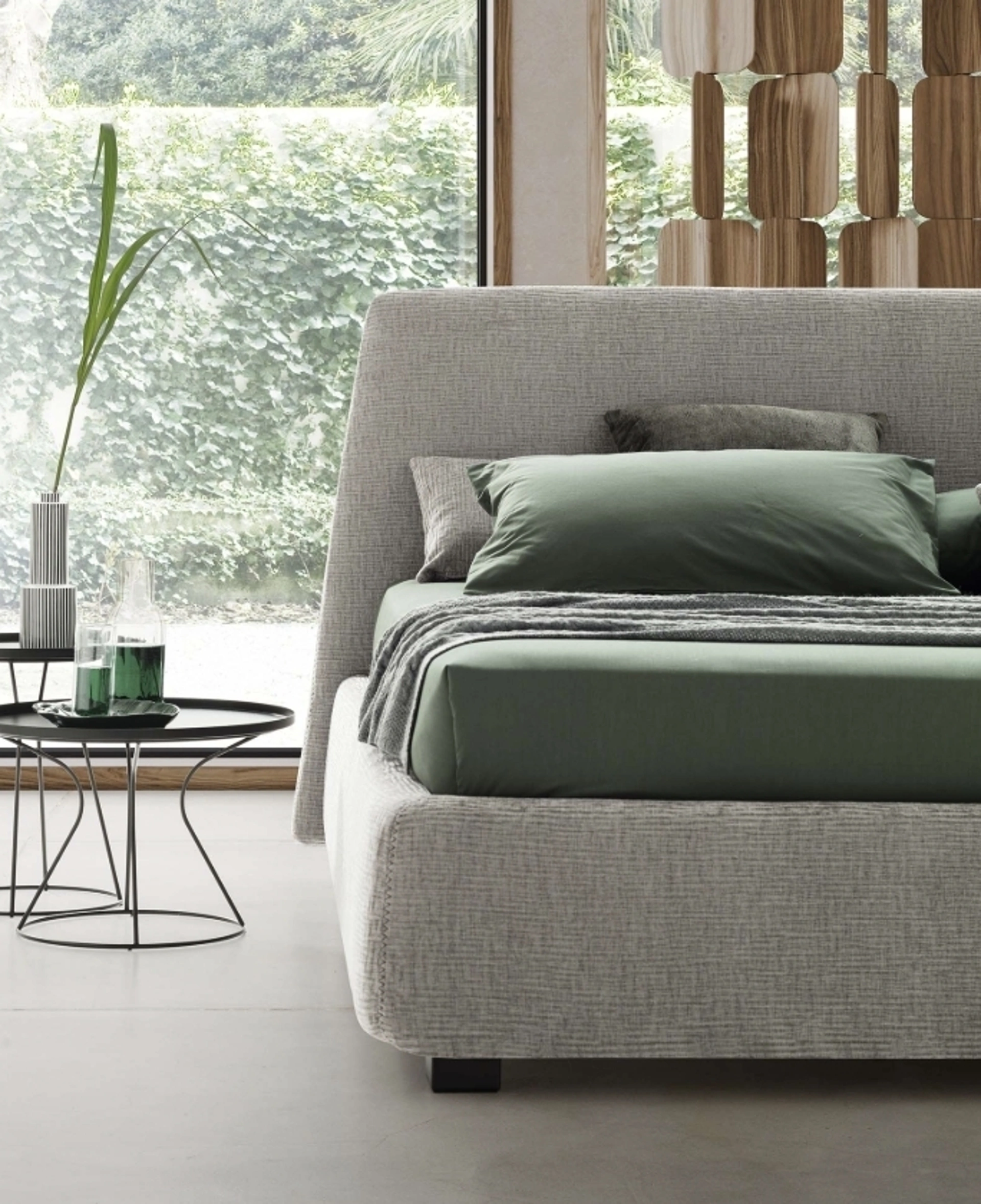 Durevolezza dei materiali e grande comfort sono gli ingredienti che distinguono tutti i prodotti della marca, tra cui anche il letto in tessuto nell'immagine.