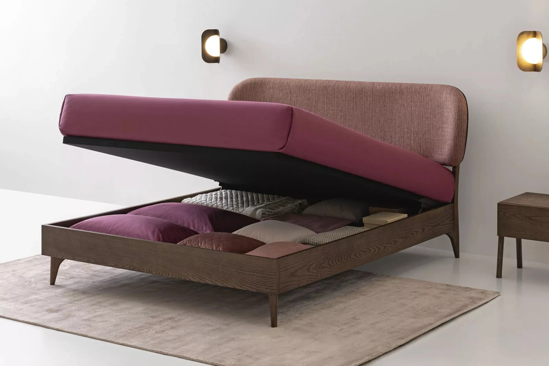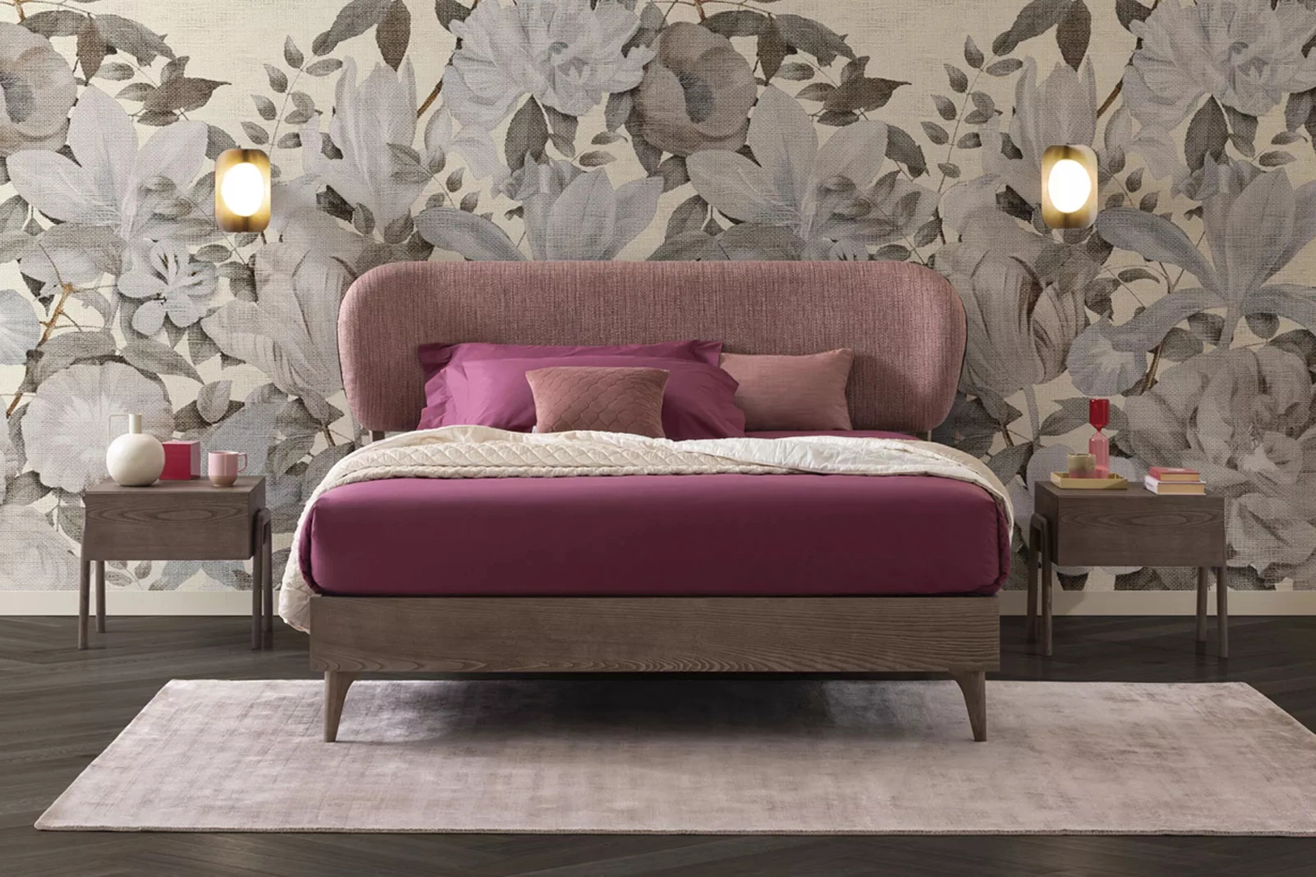 Vuoi progettare la zona notte? Ecco qui il letto in tessuto Mirabel di Oggioni per spazi moderni.