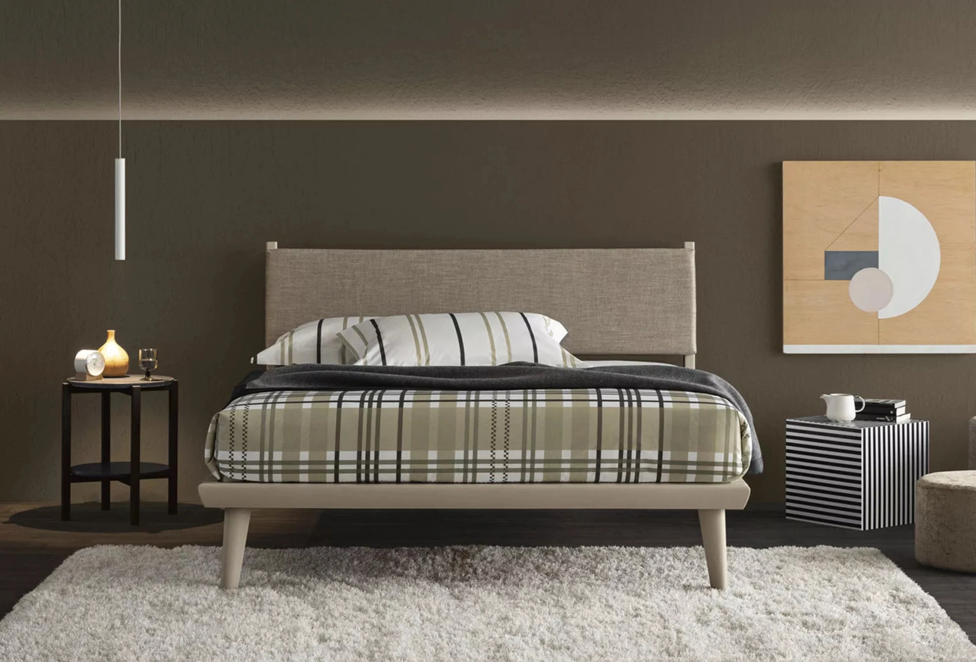 Sicurezza delle finiture e grande comfort sono gli aspetti che connotano tutti i prodotti del marchio, tra cui anche il letto in tessuto nella fotografia. Se vuoi allestire spazi moderni, ti aspettiamo per farti vedere la nostra linea di Arredamento Casa per realizzare il tuo concept su misura. Se vuoi ricreare un'ambientazione intima e distensiva, il modello mostrato in foto fa per te: nella stanza del riposo dovrai ricreare un'ambientazione distensiva, per farti rigenerare le energie psicofisiche tutte le notti. Con il Letto con testiera Orimento di Oggioni del rinomato brand, leader del settore, potrai valorizzare la tua zona notte assicurandoti comfort, funzionalità e un design pulito.