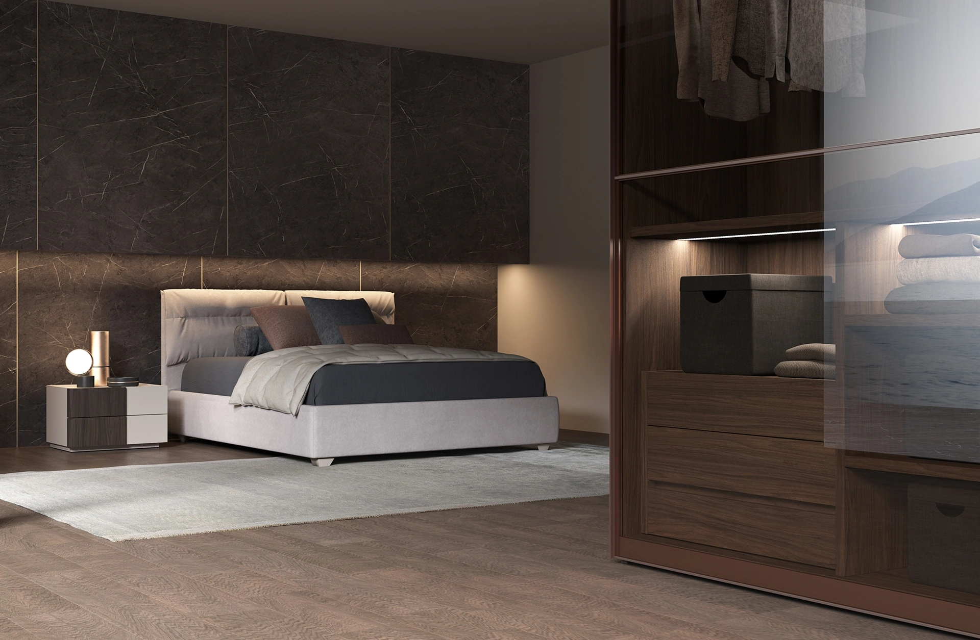 Il letto Vision in tessuto, tra i modelli imbottiti matrimoniali moderni di Favero, è perfetto per garantirti il relax totale.