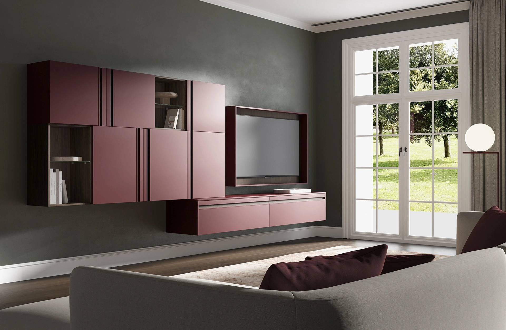 Le Pareti Attrezzate hanno acquisito un posto di primo piano nella zona giorno delle nostre case: sono arredi multifunzionali e salvaspazio sempre realizzabili su misura per te. Attraverso un gioco dinamico di accostamenti fra componenti a giorno o vani chiusi, le Pareti Attrezzate moderne arredano il living ottimizzando ogni spazio. Per informazioni e preventivi sulla Parete Attrezzata sospesa 3RF2081 di Favero nella fotografia contattaci! Il modello proposto è realizzato in laccato opaco, ma grazie ad un'infinità di finiture, cromie e conformazioni, potrà adattarsi a stili di ogni tipo.